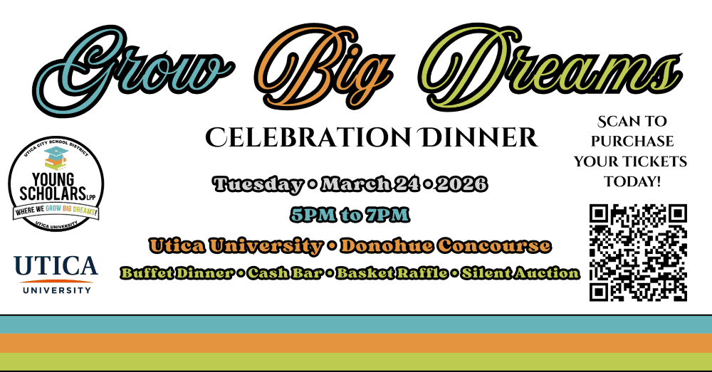 Calling all alumni, friends, and program supporters! Join us on March 24th from 5pm to 7pm at Utica University to connect with current Young Scholars, alumni, and supporters in celebration of the students’ achievements. Hear from current Young Scholars and alumni, including keynote speaker, Gabriela…