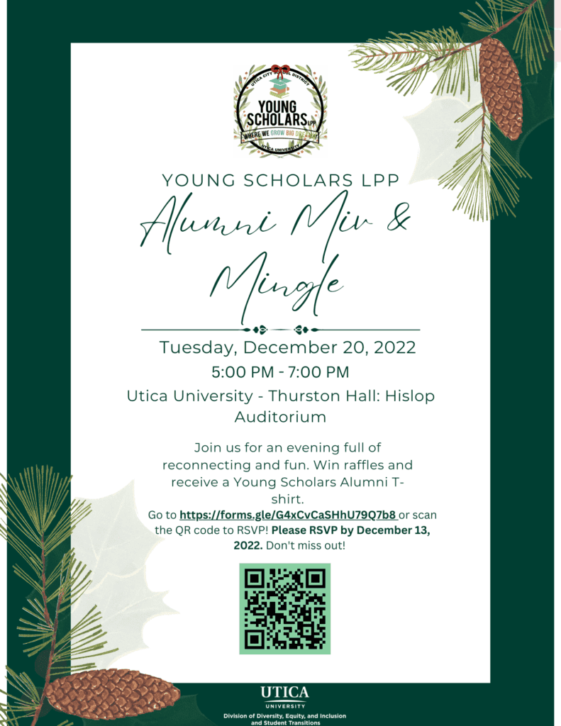 Calling all alumni, friends, and program supporters! Join us on March 24th from 5pm to 7pm at Utica University to connect with current Young Scholars, alumni, and supporters in celebration of the students’ achievements. Hear from current Young Scholars and alumni, including keynote speaker, Gabriela…