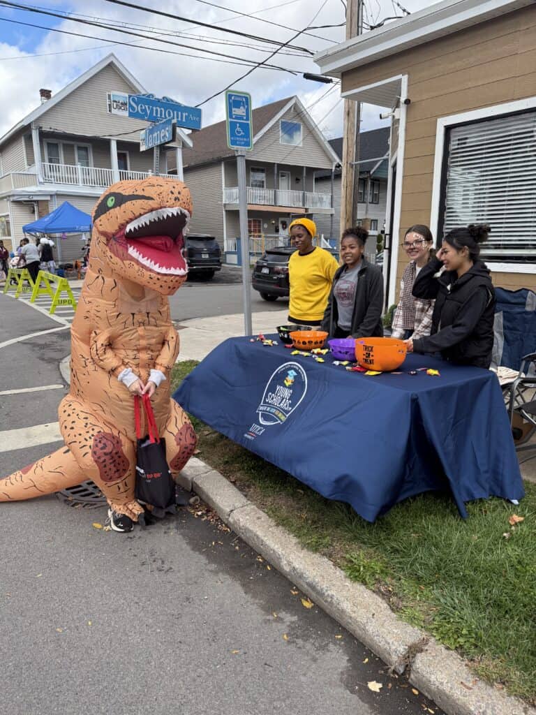 On October 25th Young Scholars participated in Cornhill Cares annual Harvest on the Hill event! Harvest on the Hill is Cornhill’s beloved annual community trick-or-treat celebration. Families are invited to walk through the neighborhood as local nonprofits, businesses, and community groups host festive booths filled with candy, treats, and fun giveaways for children. We had 6 students run our table this year and we all had a great time!